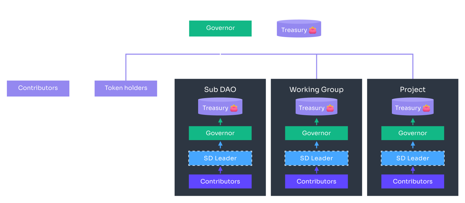 - Sub DAO / Project / Working groups leaders - individuals elected or appointed by the DAO to take responsibility for specific projects and business areas.