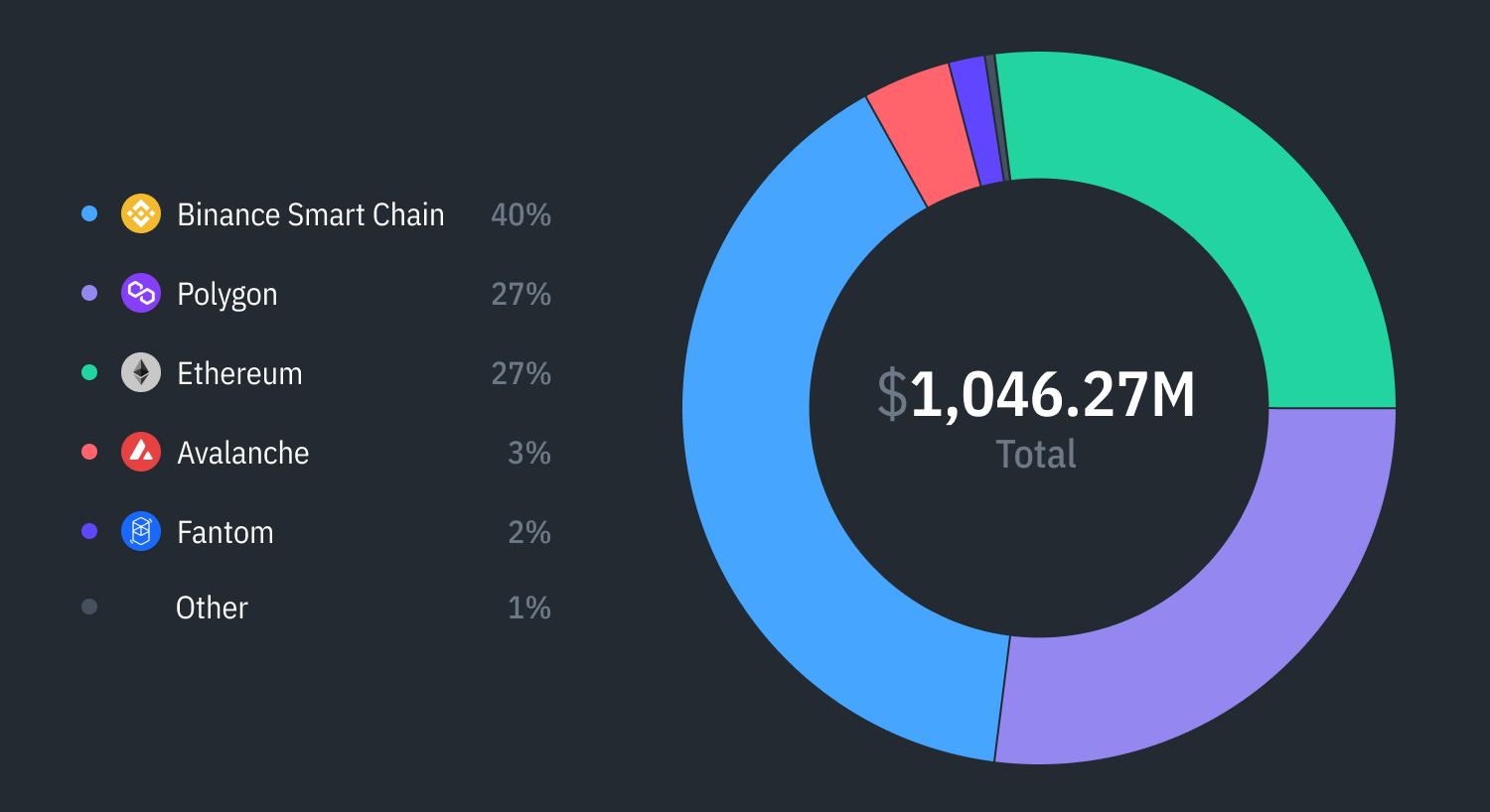To no surprise, Binance Smart Chain also occupies the largest share of DexGuru volume after looking at the transaction data.