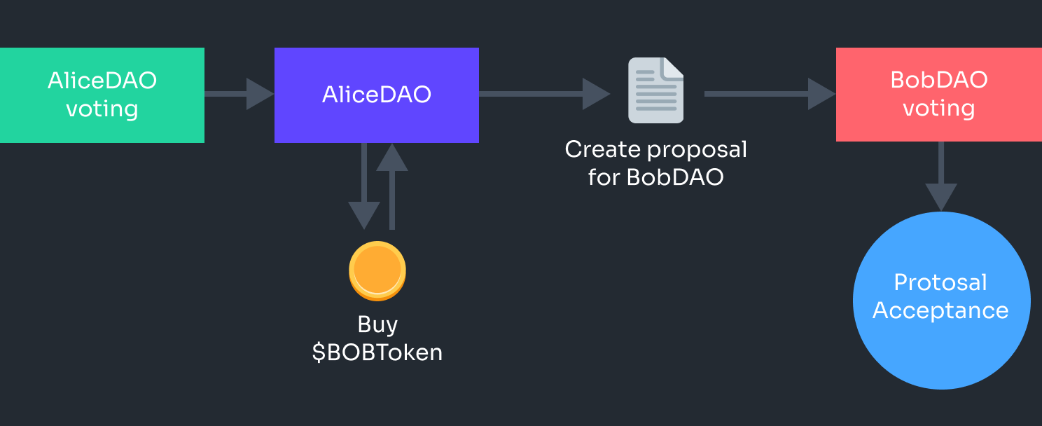 For our purposes, we’ll pretend that there are two DAOs named AliceDAO and BobDAO.