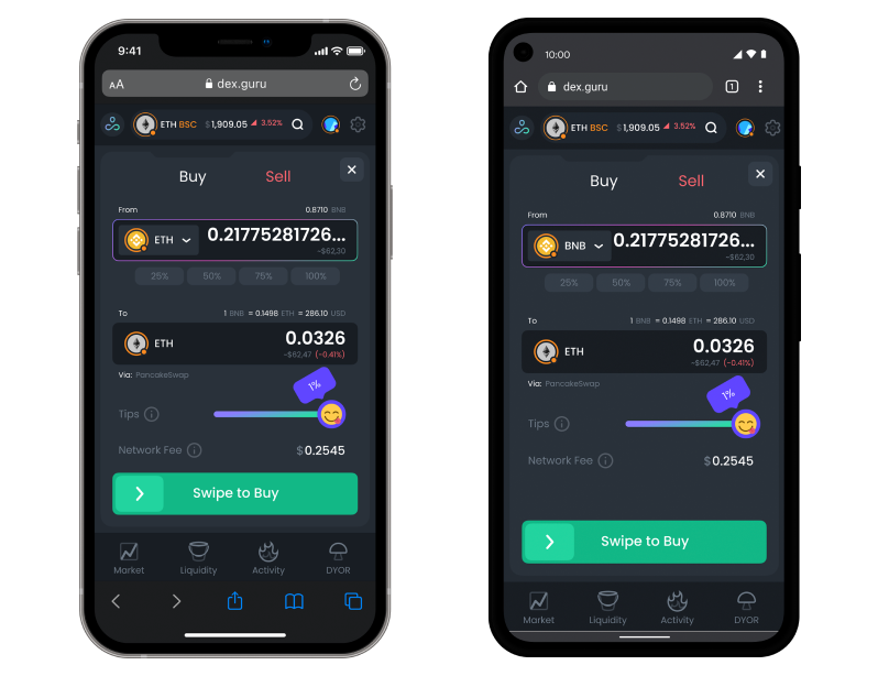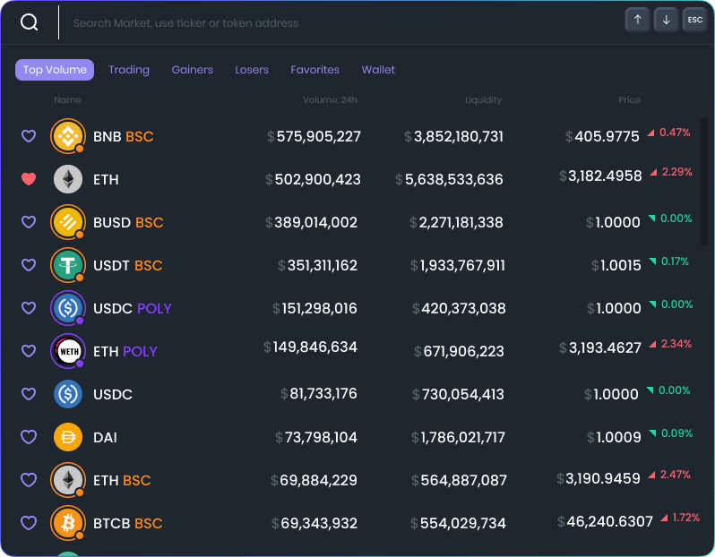 Besides charting and trading any tokens with a liquid on-chain market on the Ethereum network, you can now chart and trade any tokens on the BSC and Polygon (previously Matic) networks.