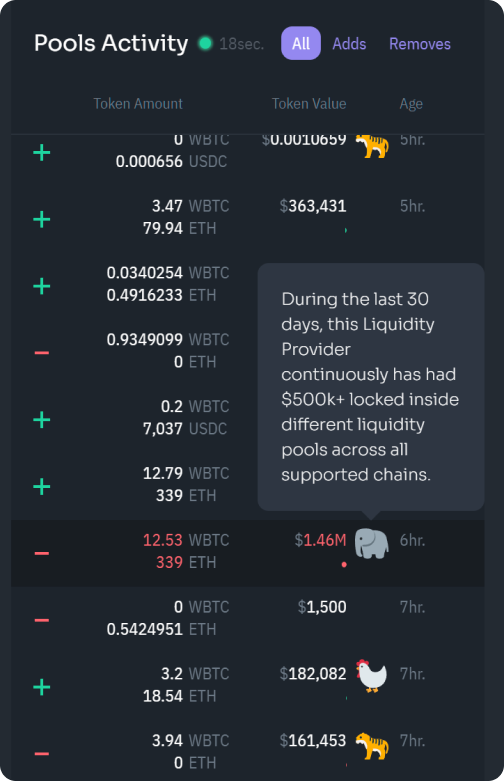 This you will now be able to quickly identify liquidity providers from the TX lists to see the type of traders adding or removing liquidity at a glance.